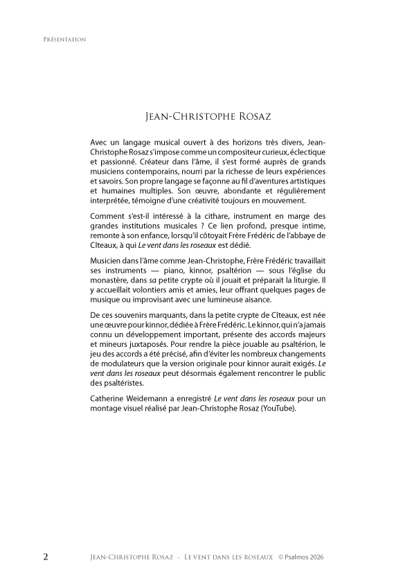 Le vent dans les roseaux   ♦  Jean-Christophe Rosaz  ♦  Édition Psalmos  ♦  9€  ♦  Détails PDF  ♦